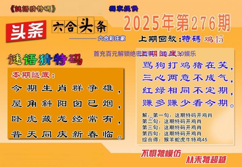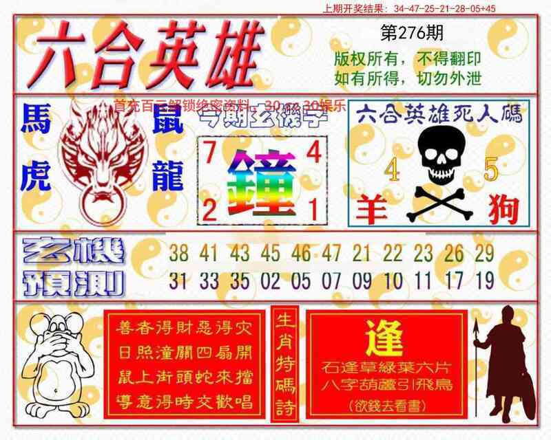 281期:电脑推算/正版解一肖输精光/玄机解一肖/六合皇五字